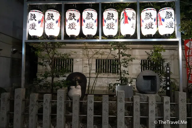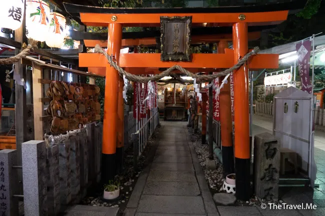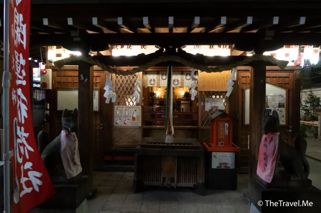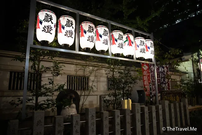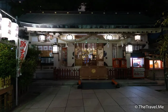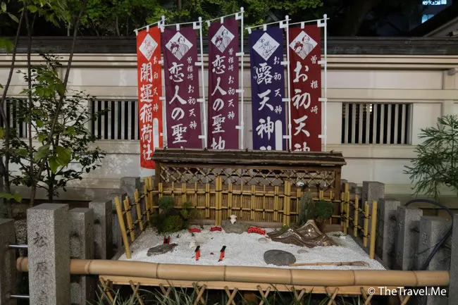 神社位處梅田一個叫曾根崎的地區,這一帶有不少情人旅館與風俗店(妓院),早在第二次世界大戰前,曾根崎已是御茶屋林立,拍得京都祇園。