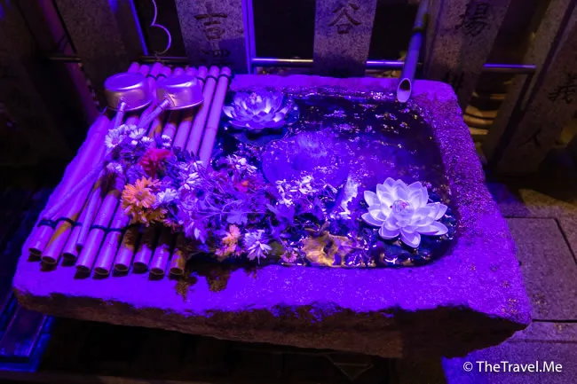 雖然已是夜晚,但神社打了柔和的燈光,看起來甚為浪漫。