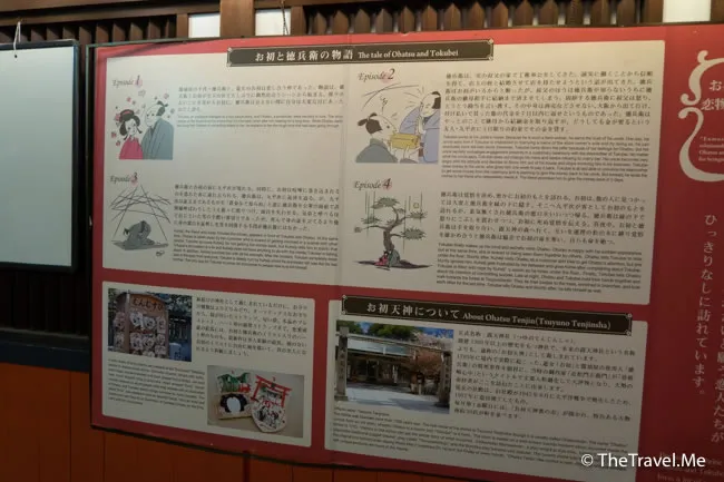 神社供奉的,是在當地給稱呼為「阿�」(お初天神)的天神,阿初是一個愛神,背後有一個老土的故事。