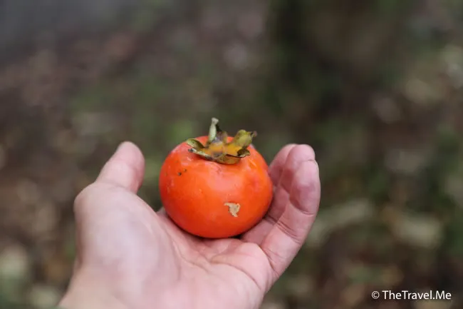 咦?這是柿子嗎?粗眉仔千辛萬苦摘了一個下來,卻發覺硬到吃不下,白白浪費了氣力。