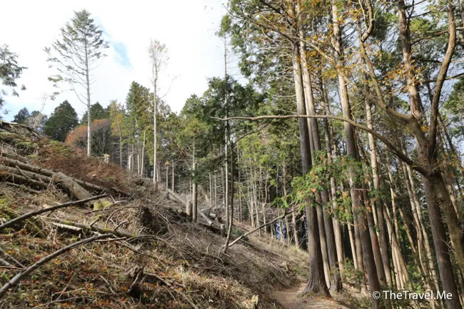 山坡上有大量塌樹,這兒離海已經很遠,仍遭受到如此嚴重的破壞,颱風海燕真是很厲害。