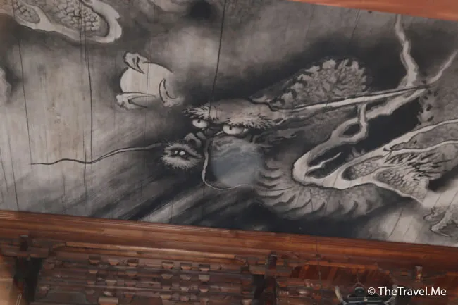 粗眉仔望入殿內,見天花板畫有龍紋,甚為特別。