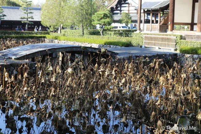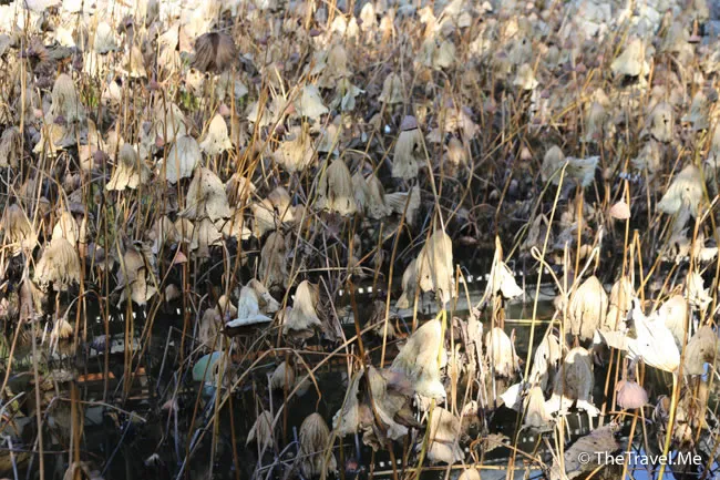 三門旁邊有一個蓮塘,塘中的蓮花全枯了,人人只顧賞楓,冷落殘荷,無人留意這寂寞「怨婦」。