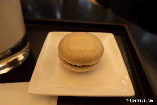 隨奶昔附贈紅豆馬卡龍,一紅一綠,絕配。