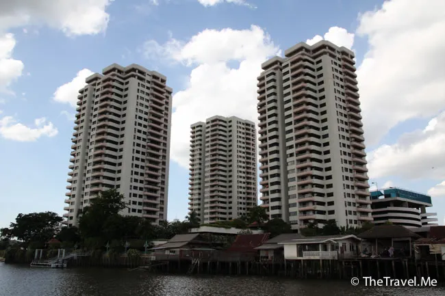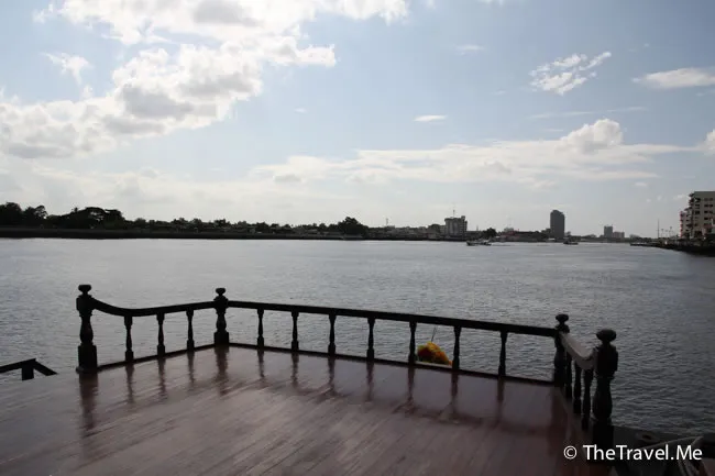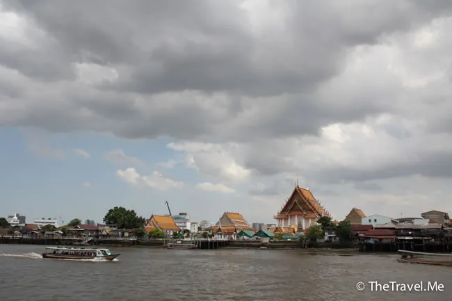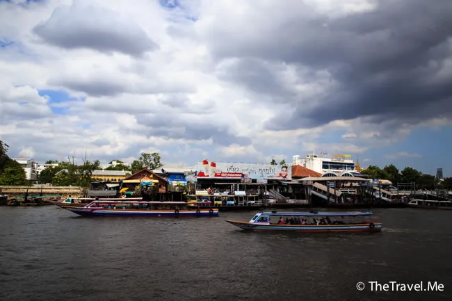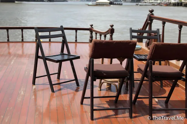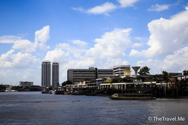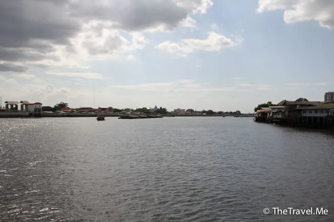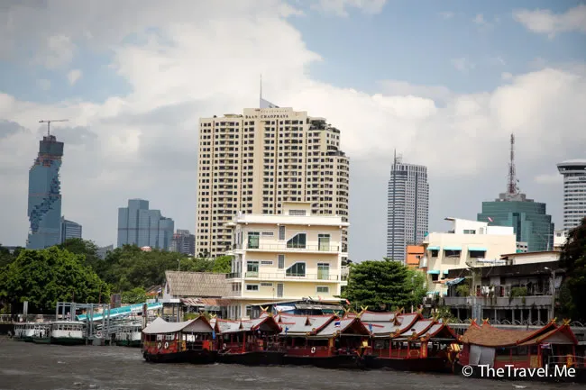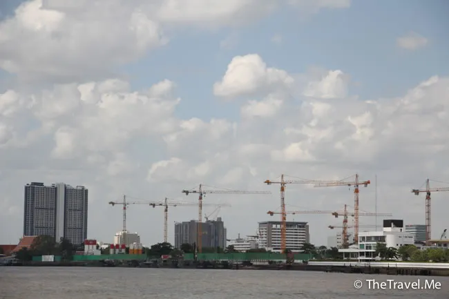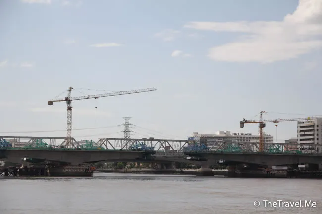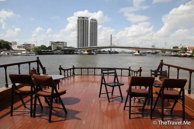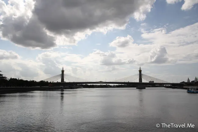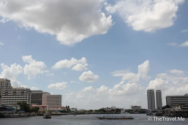 甲板的景色甚美,但太陽實在太猛烈了,粗眉仔等太陽躲在雲的才敢出去坐。沿河摩天大廈林立,有不少新建的橋樑,車水馬龍,除新加坡外,泰國可算是東南亞眾多國家中發展得最好的一個。