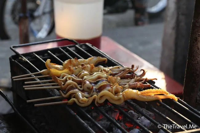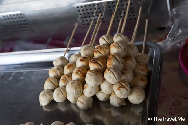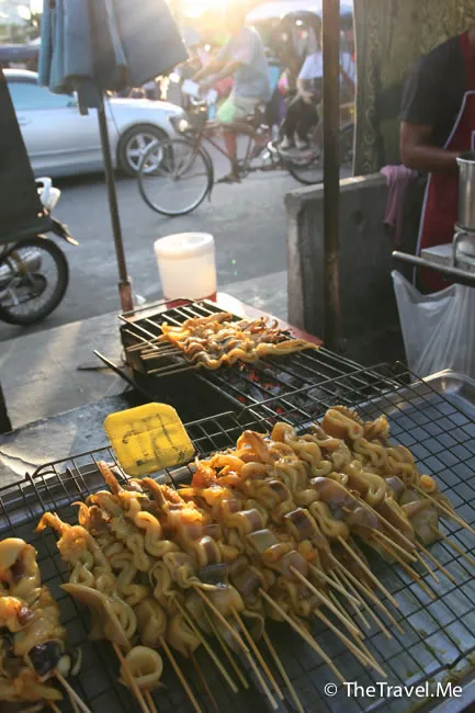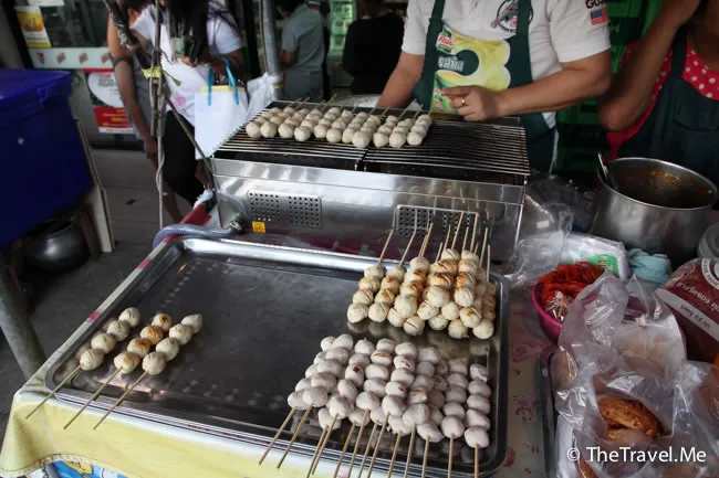 這檔串燒墨魚丸太吸引了,而且只需要十泰銖一串,粗眉仔毫不猶豫就買了兩串。