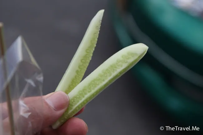 墨魚丸混有細細粒鮮墨魚,鮮味都難以形容,隨墨魚丸仲加送青瓜沙律,粗眉仔曾懷疑檔攤的老闆是否有錢賺?