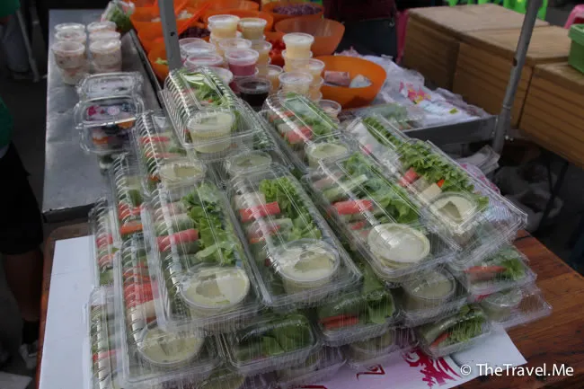 兩人本已一心封嘴封肚,誰知轉頭又看見賣相十分吸引的沙律菜卷,忍不住又買了一盒,只需要四十泰銖,即係十蚊雞港紙左右。