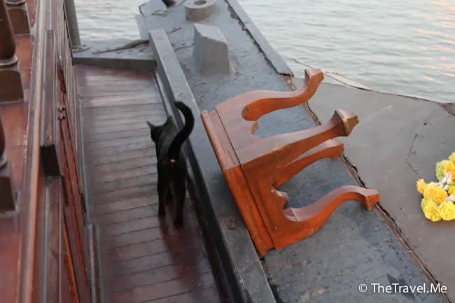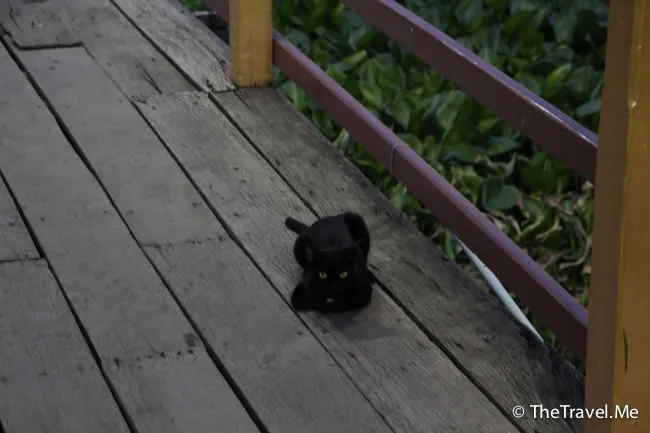 由於尚未夠鐘吃晚飯,粗眉仔和豬豬便上岸參觀一下佛寺。碼頭上有一隻貓星人,一見兩人下來,便挨過來撒嬌,好鬼死可愛。