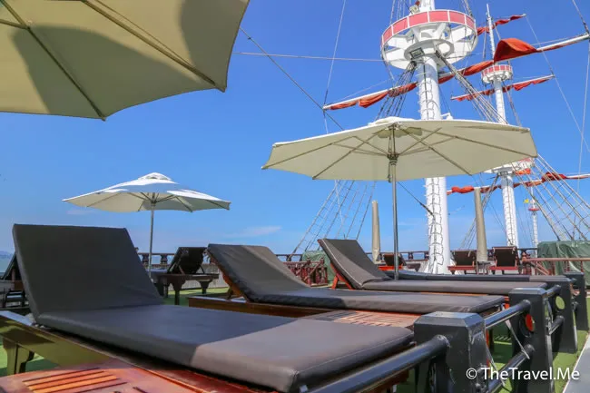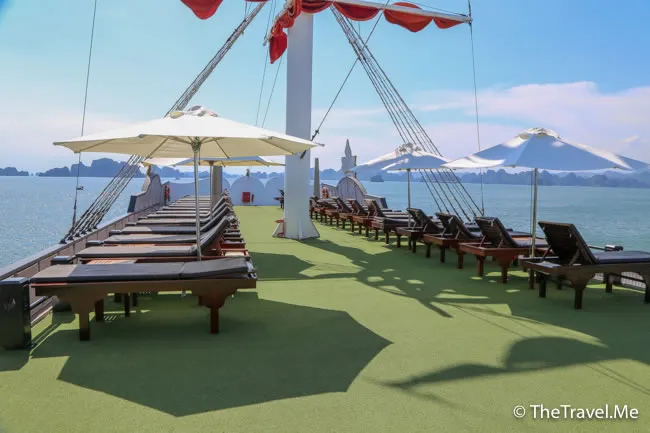 龍船的尾部有一片廣闊的甲板,乘客可以在這裏曬太陽甚至舉行派對。