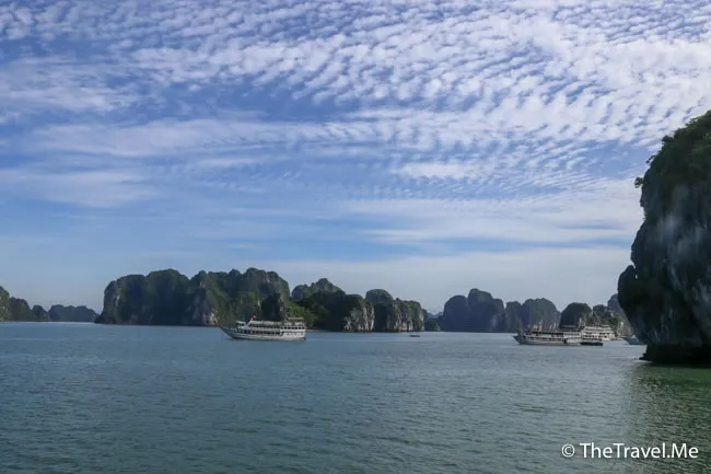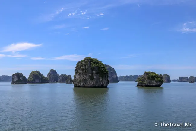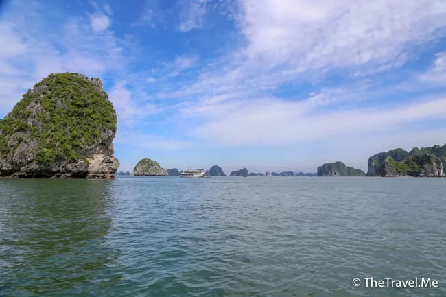 時近正午,太陽光跟昨天出發時差不多猛烈,與早上相比,風景可差多了,下龍灣最美的時段,只在日落前兩小時和日出後兩小時左右,頗為短暫。