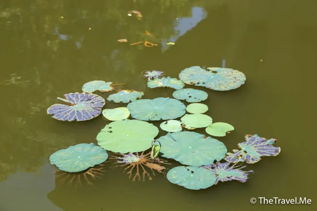 一柱寺下的靈沼池為方形,池周圍以磚砌欄杆,可惜池中沒有太多荷花,垃圾倒是不少。