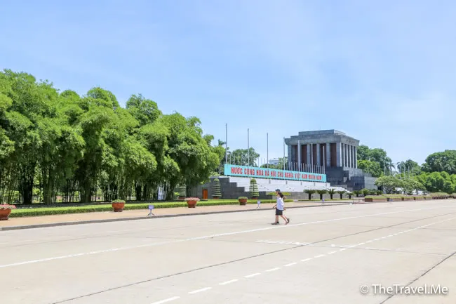 後來越共建立該陵園時,違反了胡志明的生前願望。胡志明的遺體是保存在中央大廳由中華人民共和國提供的水晶棺中,由軍方儀仗隊守護。