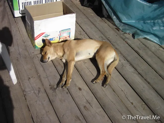 景區入口處有頭黃狗在曬太陽,粗眉仔覺得可愛便替牠拍了張照片,黃狗身邊有個大胖子,見狀立即不友善地瞥了粗眉仔一眼,嘴巴吐了幾個字出來,輕悄但有力。
