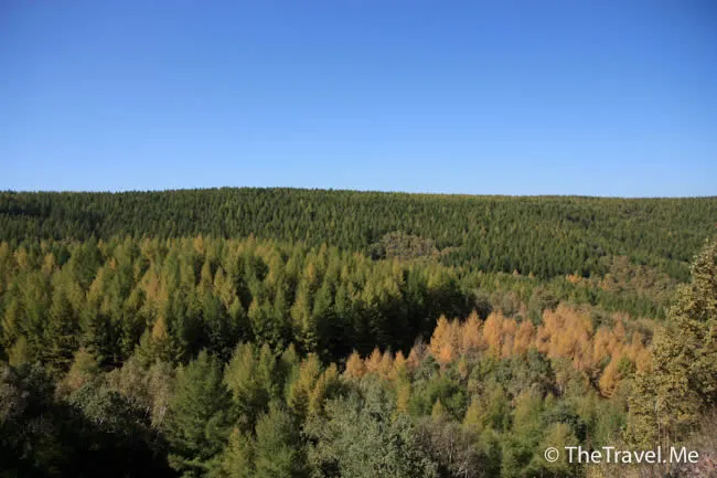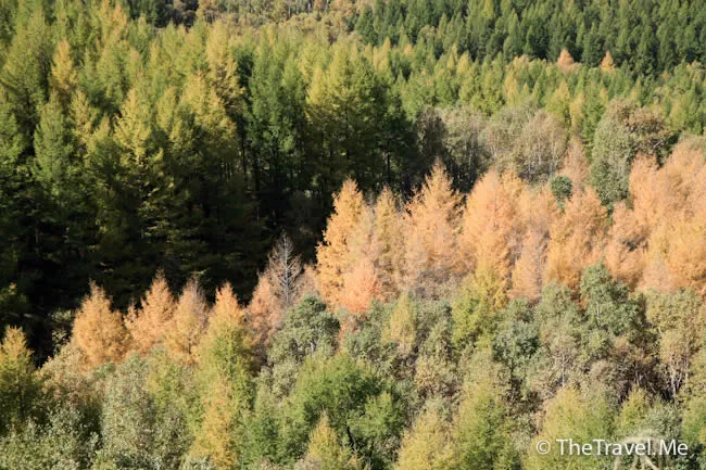 車子隨即駛往下一景點,途中駛經多個金黃色的漂亮松樹林,但這裏跟樺木溝一樣,每棵樹都受到保護,遊客不能隨便下車。