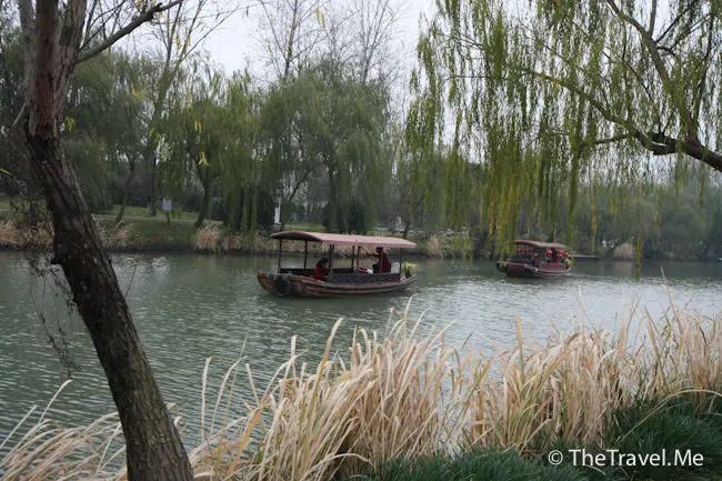 小沙洲的另一端頗有些樹,但風景一般,反而返回橋的途中,一艘小船在岸邊駛過,垂柳襯上駕娘再配合水影,構成一幅絕美畫面。