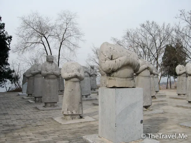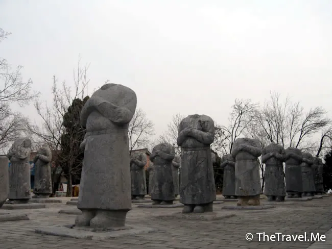 這些翁仲為何無頭?經專家考證,這批翁仲的頭大約是在距今五、六百年前的明末清初時期被毀掉的。為何只是毀掉石像的頭?那些頭到了那裏去?到現在仍是個謎。