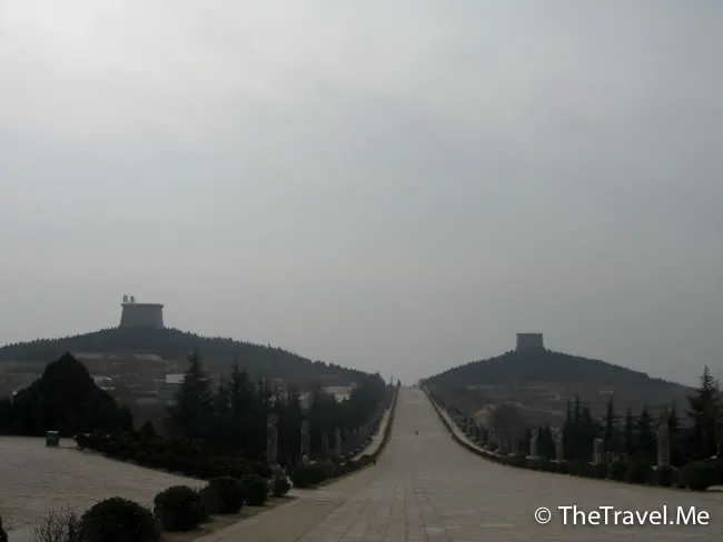 唐高宗和武則天的墳頭各處神道兩邊,遠看像兩個大奶頭。