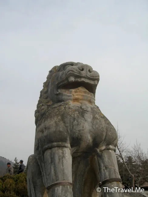 石獸:石獸放置在墓前是從漢代霍去病墓開始的。後來的歷代帝王的修建自己的陵墓時也都沿用石 人石獸的陵前裝飾,所以現在的唐陵、宋陵、明陵、清陵幾乎都在陵墓前陳列儀仗隊式的石人石獸。