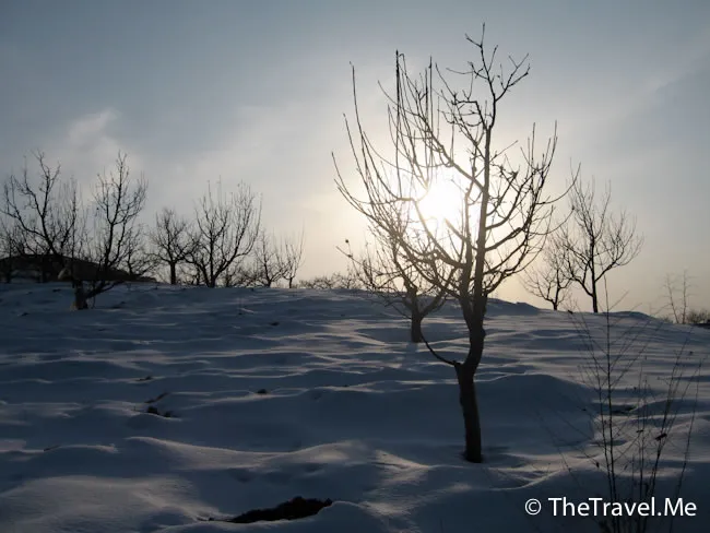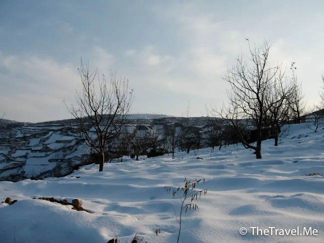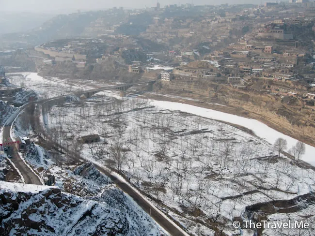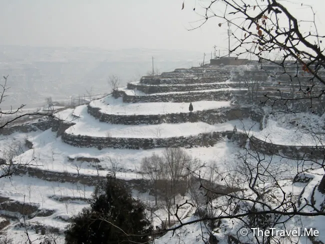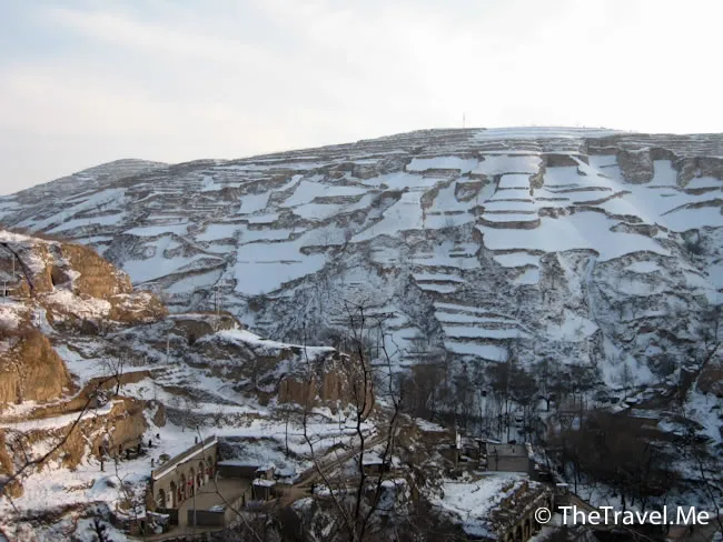 離開白雲山,驅車往姜氏莊園,沿途也是普通的黃土地貌,但配上白雪,立即可觀性大增。