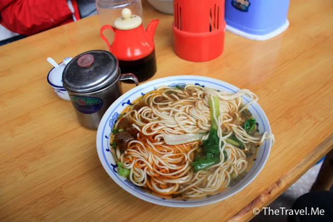 離開張飛廟後,粗眉仔同太后第一時間到中天樓附近的一間麵店吃麵,因這麵店的麵是即拉即燙,所以絕對新鮮,三塊錢一大碗,抵食到暈。