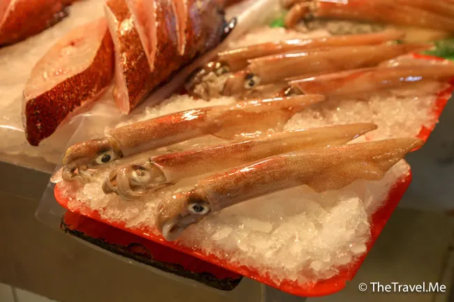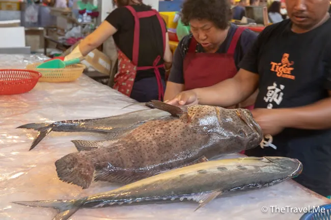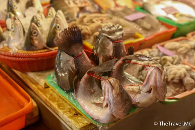 途中經過魚市場,遊客可以在這裏吃海鮮,但粗眉仔覺得有點污糟,不敢試。