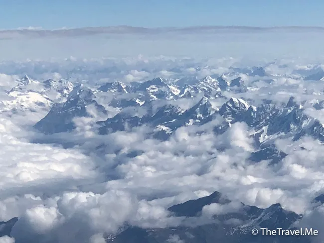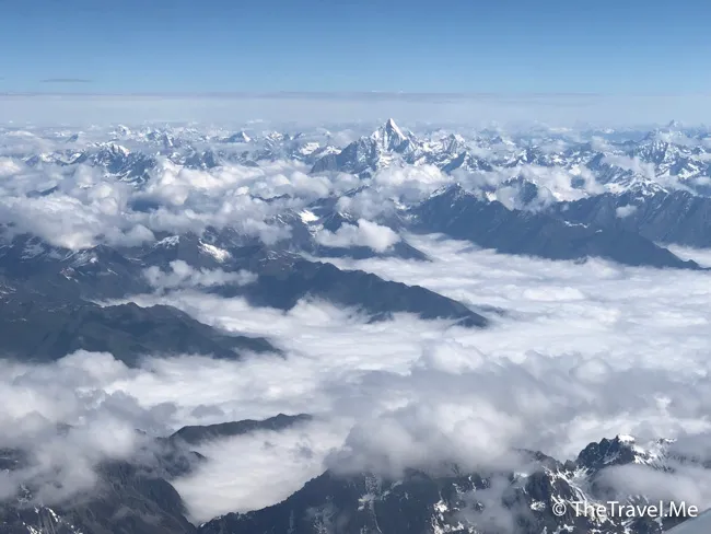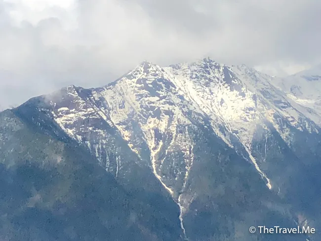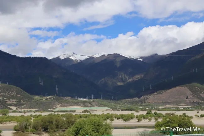 飛機一穿越雲層,便見幾刃直刺藍天的漂亮雪山,過了雪山便是西藏的範圍,成都離林芝不遠,飛行時間只需一個半小時多一點。