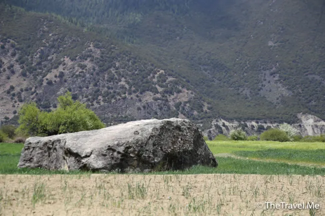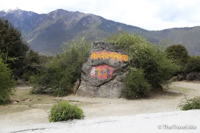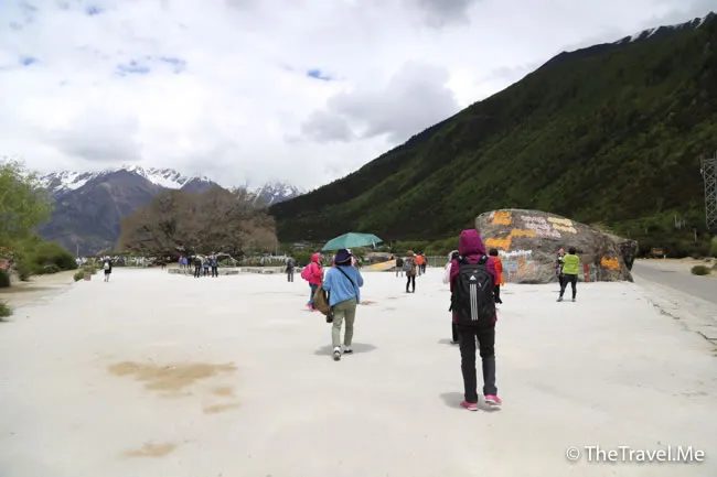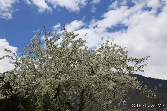 原來這兒有棵藏族人非常崇拜的千年桃花樹,可惜時值暮春,桃花全落了,只剩下光禿禿的枝椏。