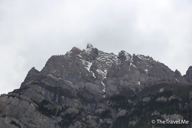 雪山之中有一個黑白相間的,份外矚目,小劉說這山峯叫「盔甲山」。