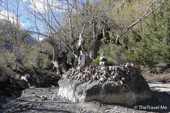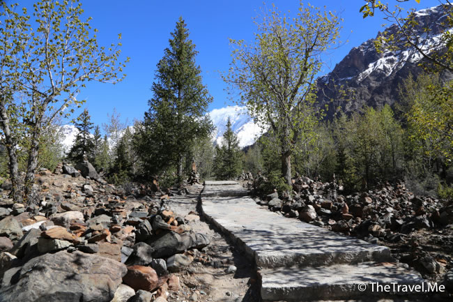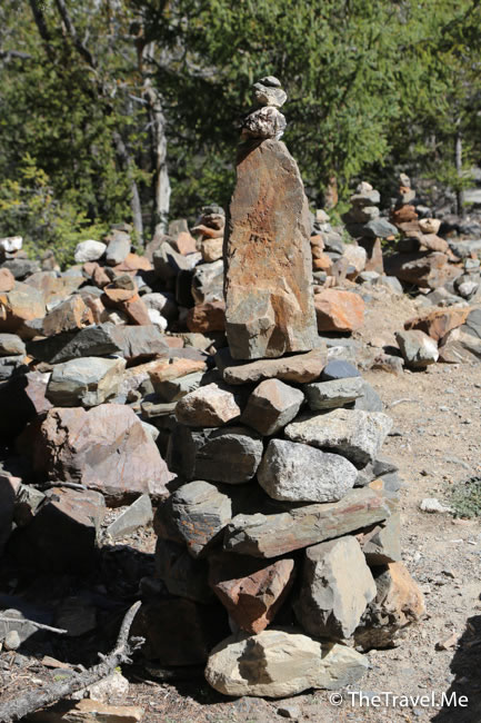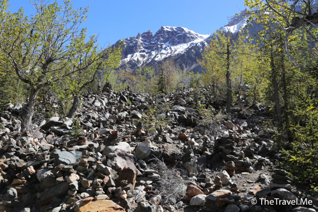 臨近終點有一個石堆,石堆中有無數小石塔,配上遠方的雪山,也算是一道不錯的風景。