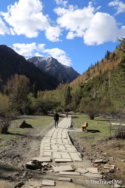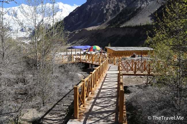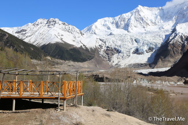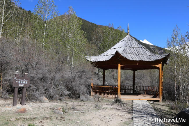 雖然前往米堆冰川的步道不算難行,但沿路會有些石凳或涼亭供遊客休息,設想得十分周到。