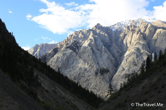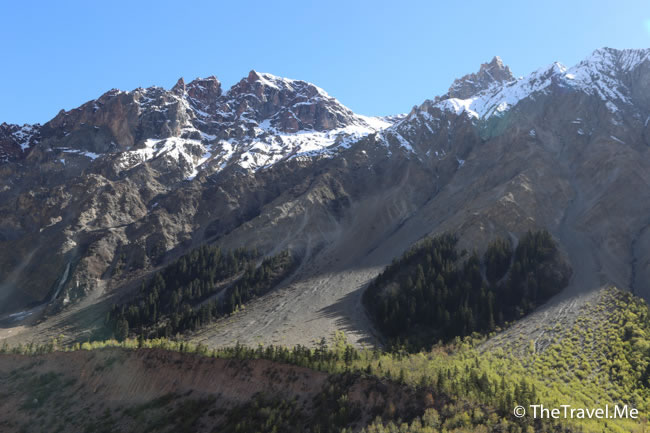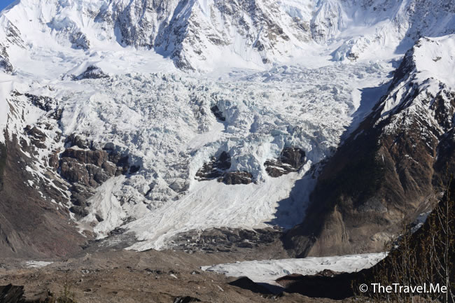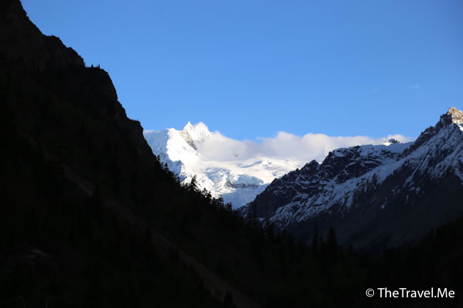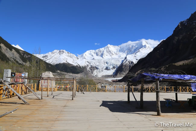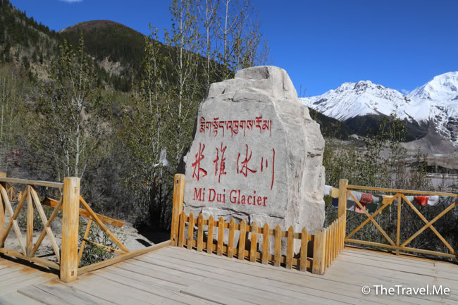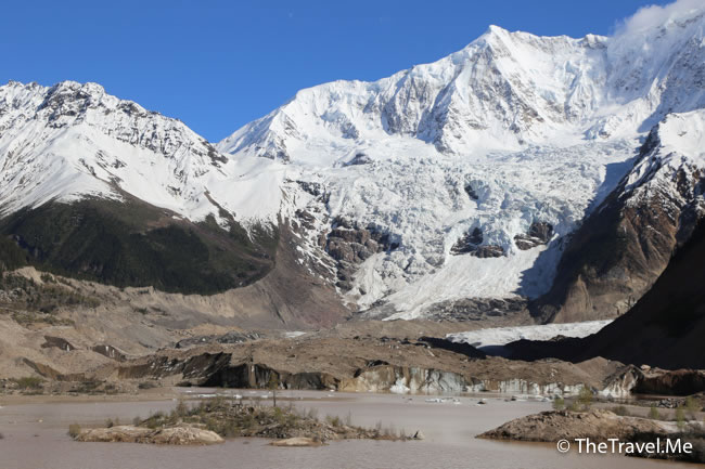 米堆冰川末端一直延伸到山腳下的米堆村,冰川末端只有海拔2400米,是世界上海拔最低的高山冰川。