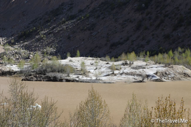 美中不足的是,冰川湖的湖水頗為渾濁,看不見雪山和冰川的倒影。