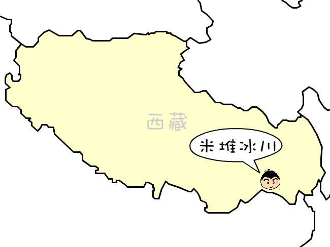 米堆冰川位於西藏林芝波密縣城以東的玉普鄉,川藏公路旁邊,由兩條冰瀑布匯流而成。