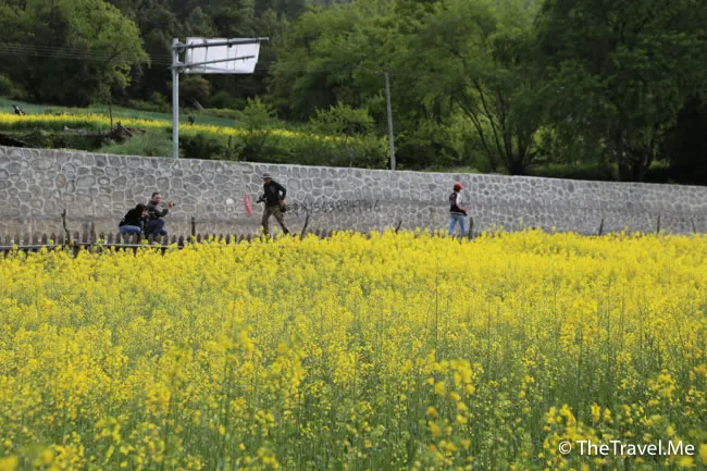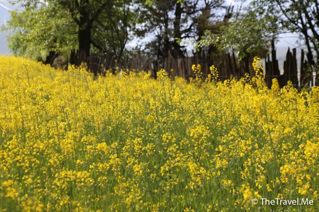從這裏可以隔着圍牆欣賞漂亮的油菜花田,可惜電線桿粗到嗌救命,睇見都唔開胃。