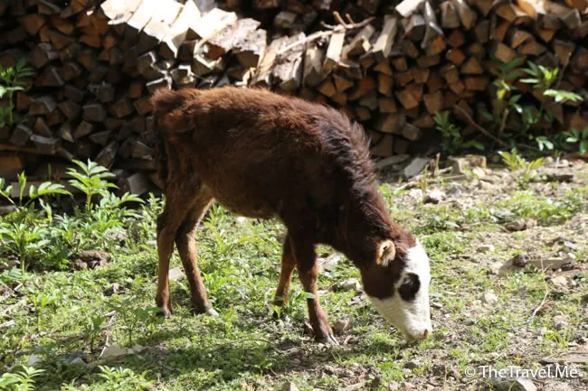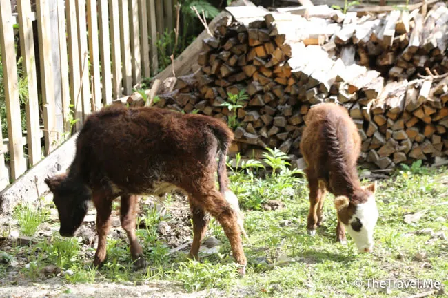 路邊有幾隻可愛的小牛,懶理圍牆外的喧囂,逕自在溫暖的陽光下吃草。