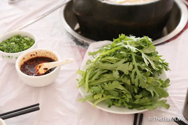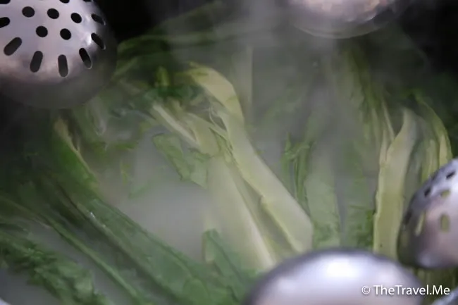 食完雞肉,便可以放其他蔬菜落去灼,出乎意料,餐廳居然供應唐蒿和白菜,估計全都是從四川運來的。