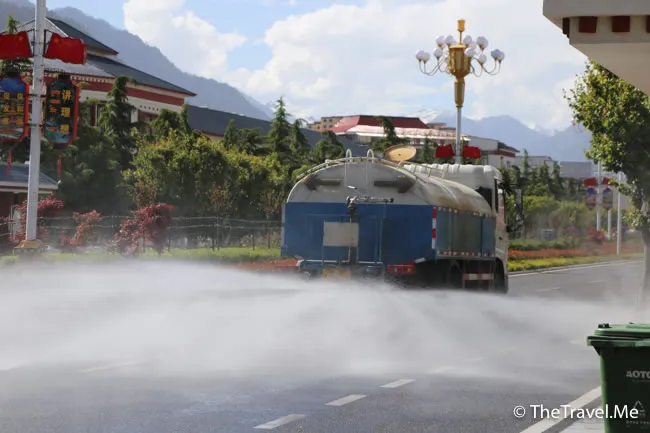 可能這裏是林芝的第一大城市,市政府會安排灑水車,定時定候為街道保濕。