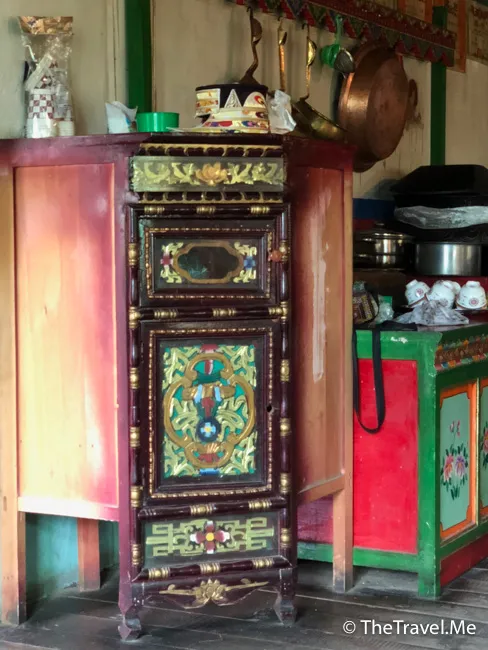 拉木稱因屋裏面供奉活佛,所以不准拍照,屋裏的陳設十分簡單,基本上除了正中一個大灶頭之外,就沒有其他特別東西。