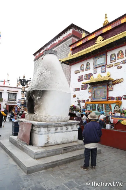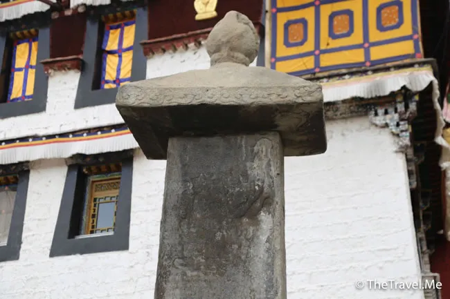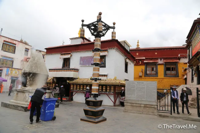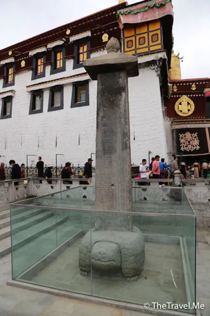 大昭寺門前廣場上,樹立了唐蕃會盟碑和勸人恤出痘碑,比較特別的是勸人恤出痘碑,此碑為清朝乾隆年間駐藏大臣和琳(和珅之弟)在西藏救治天花患者時所立。