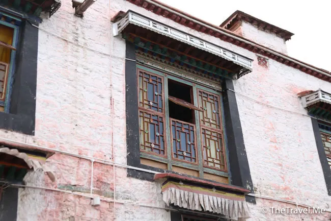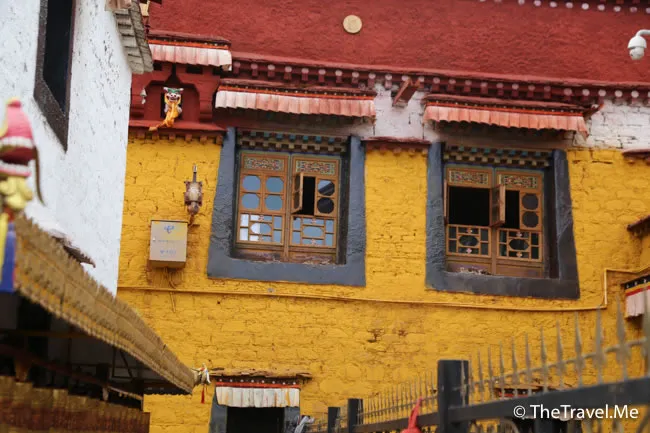 貼着大昭寺一邊的是白色牆壁,看起來甚為莊嚴,據講,藏民係用牛奶將牆壁塗成白色的,只不知現在會不會受了漢人影響而改用漆油。