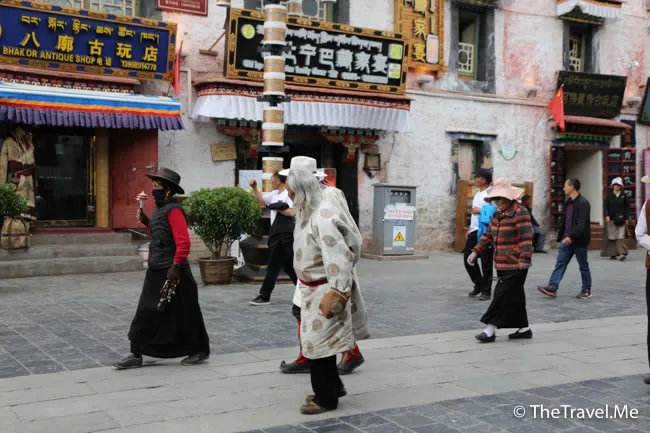 藏族人稱八廓為「聖路」,藏語「廓」的意思即為「轉經道」。環大昭寺外牆一圈稱為「八廓」,是藏民們行轉經儀式的路線,在八廓上行走必須和轉經筒的旋轉方向一致,即順時針方向。