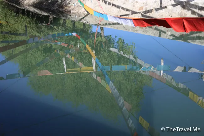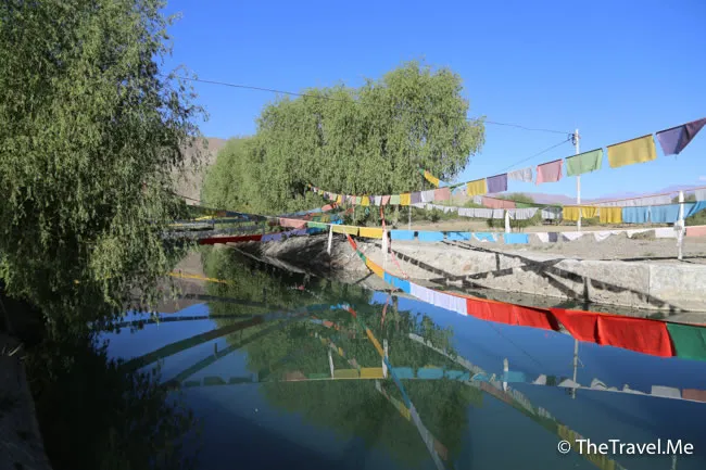 未幾,司機便把車停在路邊讓大家去去廁所,�然不是甚麼景點,但水邊掛滿經幡,亦堪稱一景。
