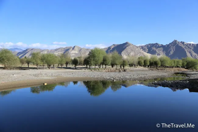 旁邊的河是拉薩河,拉薩也是西藏其中一條主要河流,也是西藏首府拉薩的命脈。