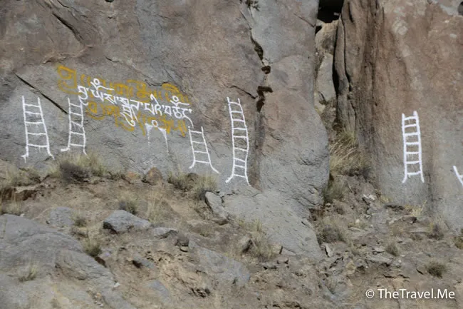 沿路不時會看見岩石上有梯子的圖案,小劉說這些叫「天梯」,是藏人的一種風俗。