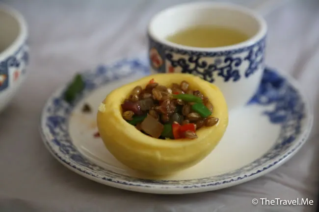 不過無論如何,小劉還是安排了兩味川菜,其中一味是窩窩頭,味道不錯,不過如果再少些肉就更好。