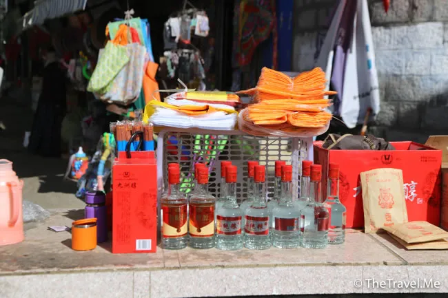 札基寺門口有好多售賣酒、哈達和藏香的小販,粗眉仔只拍照但冇幫襯,所以被罵了。
