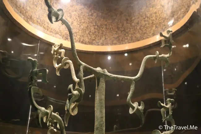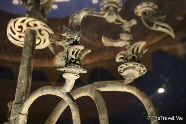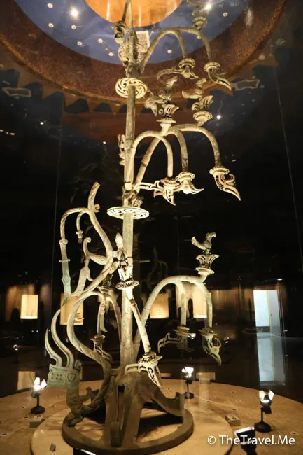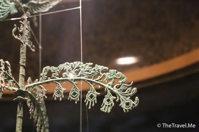 這棵搖錢樹在附近古墓出土,屬東漢時的文物,非古蜀國,但亦一併放在這裏展出。