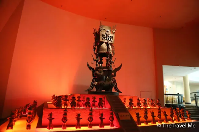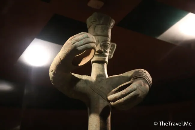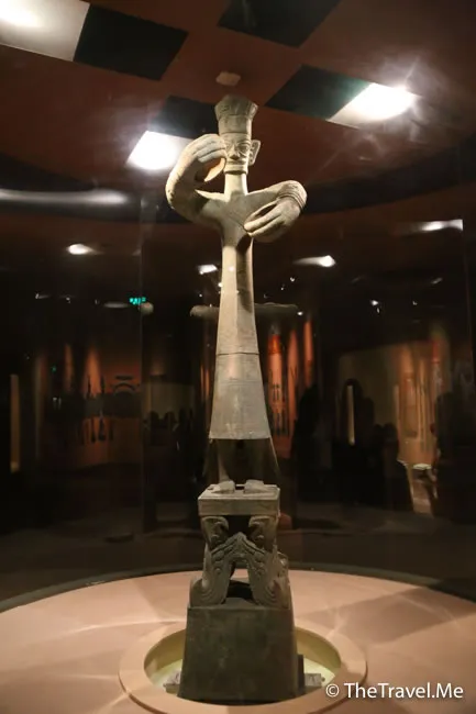 展館內另一個不得不看的精品,是這具青銅立人像,距今已有三千多年歷史,是中國出土年代最久遠也最高大的青銅人像。