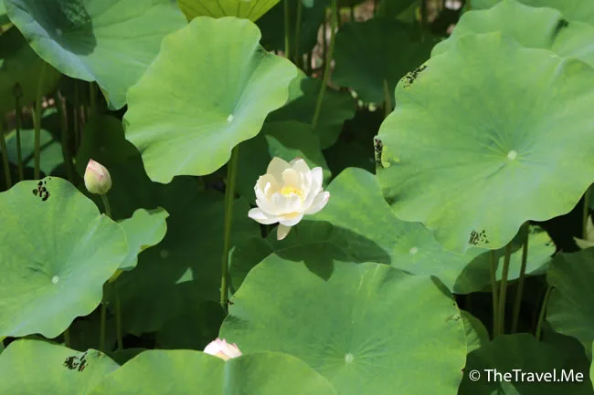 途中經過一個漂亮的荷花池,可惜不著時,只有零星幾朵花兒。